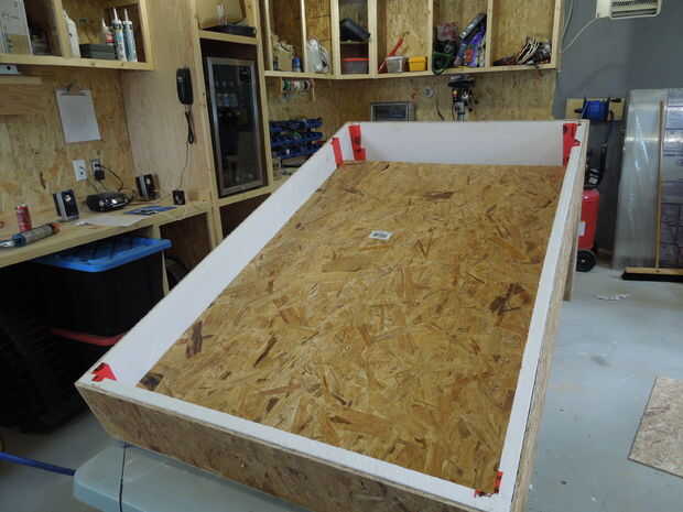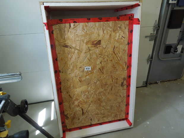 A continuación, dos placas de OSB se cortar para caber a través de los espaciadores y luego pegados y clavados en su lugar. En la parte inferior del colector, un espacio de 1 1/2 fue dejado hacia fuera para permitir que el aire frío entrar en la cámara de calentamiento.