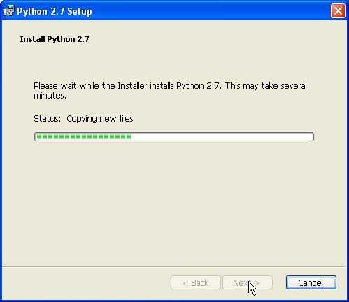 1. instalar Python. Ejecute el instalador de windows python-2.7.msi y siga las instrucciones en pantalla.