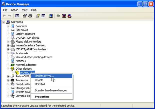 3. instalar controladores USB, enchufe en la placa de Arduino, elija el Asistente de agregar Hardware de Windows el directorio "FTDI USB Drivers".