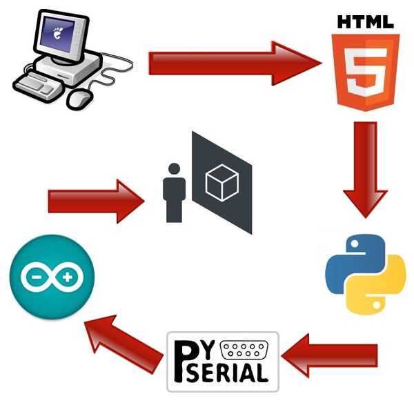 Como se puede ver las imágenes también funcionan como enlaces y por lo tanto como un botón. Si haces clic en uno de los botones enviará un mensaje con la función de "ws" que es una función que puede encontrarse en los archivos de script de java. La < div onClick="ws.send('0');" > Declaración enviará un 0 con javascript a python que enviará un byte para el Arduino. El "0" es interpretado por el Arduino y resultará en un cambio de las acciones realizada por el Arduino.