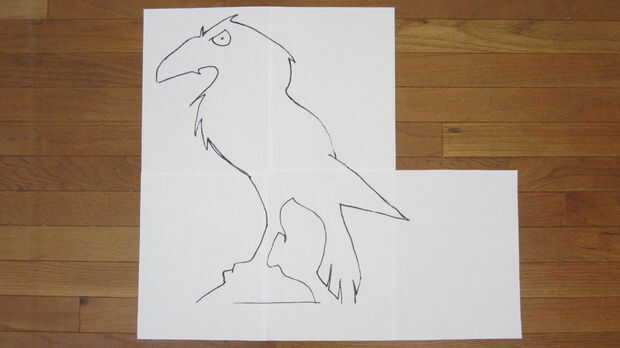 Ahora es necesario reconstruir la imagen. En primer lugar, tomar un par de tijeras y cortar los márgenes alrededor de la imagen. Sólo necesita hacer esto para todas las otras páginas. Línea de las páginas por lo que la imagen original es visible. Luego coloque las páginas con cinta scotch.