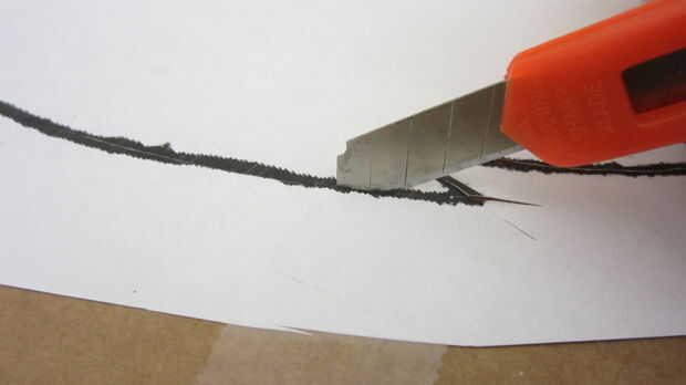 Ahora es necesario transferir la imagen a la cartulina. Utilice un cuchillo afilado para cortar cuidadosamente a través del papel a lo largo del trazado. Comenzar con los detalles interiores como los ojos y la boca. Luego corte los bordes exteriores. Si el papel se pone en movimiento, sosténgalo con la mano libre como cortes.