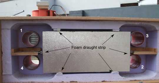 Añadir un aislamiento detrás y sujete a la caja. He añadido algunas capas de bosquejo excluder alrededor del perímetro y también a través de las fronteras eso compartimientos separados 1-4. En este punto las cosas conseguían ásperas así que simplemente atornillar la parte posterior con tornillos de 70mm. Sin bisagras y cierres. Más adelante tal vez.
