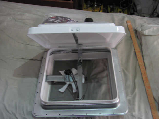 Lo que realmente necesitaba era un agujero en el techo para ventilar el aire caliente hacia fuera. Puesto que la furgoneta es vieja y pagado, me puedo permitir hacer mods de cuerpo que se arriesgue.