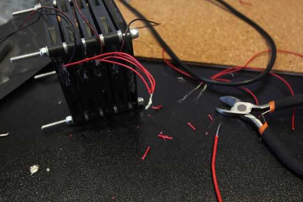 Estos dos cables a los cables negros y rojos, que sólo tiró a través de los tubos de refrigeración de la soldadura.