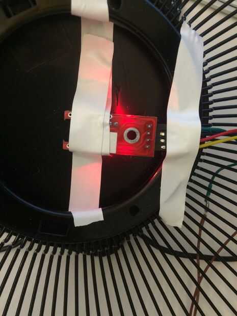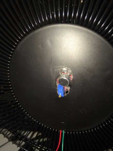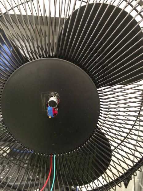 El usuario enfrentará a la cara frontal del ventilador cuando hablan en él. Esto requiere el sensor en la parte frontal el ventilador hacia el usuario. El mejor lugar para poner mi sensor fue en el disco de plástico medio delantero. Para un rendimiento óptimo el sensor no debe estar bloqueado por cualquier plástico, así que perforé un agujero para el sensor y es potenciómetro. Ahora sonido no esté obstruido en todo y el sonido de las cuchillas es parcialmente al sensor y el potenciómetro no se mueve o golpea a menos que el usuario decida para que pueda ajustarse.