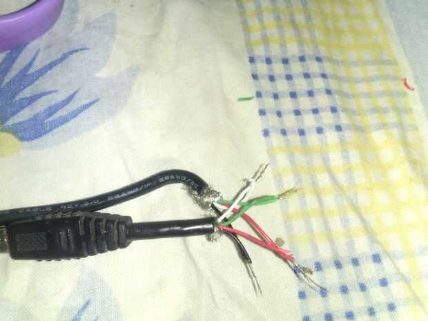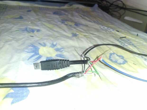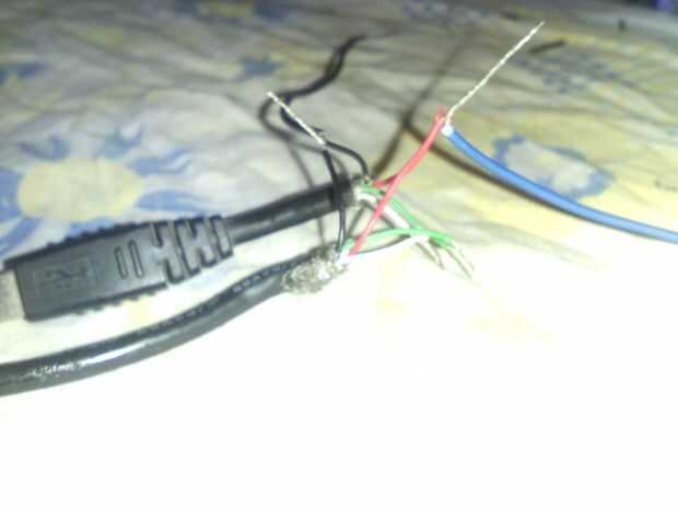 Ahora se unen el cable rojo al cable rojo de la USB negro (aquí tomé azul) a los negros en la USB.