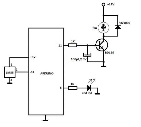 temp de flotador; int tempPin = 9; int tempMin = 70; tempMax int = 100; fanPin int = 7; velocidad del ventilador int = 0; void setup() {pinMode (fanPin, salida); pinMode (tempPin, entrada); Serial.Begin(9600); } void loop() {temp = analogRead(tempPin); temp = (temp * 5.0 * 100.0)/1024.0; temp = (temp * (9.0/5.0)) + 32.0; Serial.println(Temp); Delay(1000); Si (temp < tempMin) {velocidad de ventilador = 0; digitalWrite (fanPin, LOW);} si ((temp > = tempMin) & & (temp < = tempMax)) {velocidad de ventilador = mapa (temp, tempMin tempMax, 32, 255); analogWrite (fanPin, velocidad del ventilador);}}