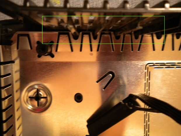 Además, usted tendrá que quitar el plástico desde el interior de la caja superior, hay bits levantados de las rejillas de ventilación en el interior de la caja. (Foto 2)