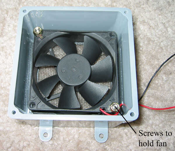4. un círculo se corta en la tapa de la caja eléctrica (ventilador caja) para dar cabida a uno de los vasos de plástico.