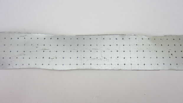 Por último, utilice un par de tijeras para cortar secciones cuadradas de cuatro orificios. Estos serán los soportes que sujetan los ventiladores.