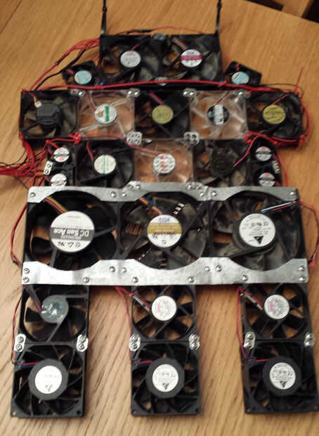 Nuestro makerspace es muy afortunado de tener técnicos artículos donados. A menudo quedamos rotos portátiles y ordenadores que son rescatados para las piezas de trabajo. Hay un gran número de fuentes de alimentación y ventiladores de ordenador en almacenamiento contenedores de sobre flujo. Establecido para hacer algo útil de nuestra abundancia de equipo.