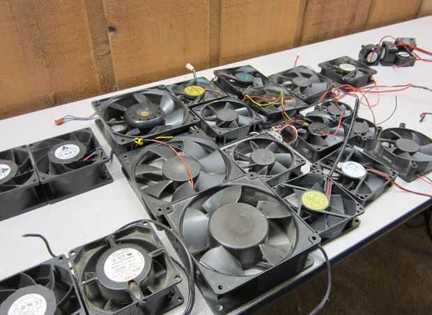 Teníamos muchos fans y algunos de ellos eran de diferentes tamaños. La mayoría de los fans eran 80 mm x 80 mm, para que filas encajan muy bien. El ventilador de cráneo terminó con 25 fans (y todavía tenemos más fans en el bin)!