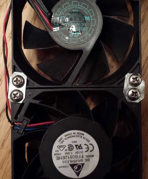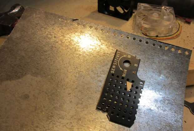 Colocar la chapa sobre una superficie blanda como restos de madera. Coloque los ventiladores en el arreglo deseado, puede ayuda a delinear los ventiladores en el metal como guía. Insertar un clavo en el ventilador los agujeros de montaje y utilizar el martillo para hacer el guión. Luego perfore las piezas con sangría y cortar el soporte personalizado. Si fuiste cuidadoso, alineen los agujeros y usted puede poner los tornillos por los agujeros. Si no, inténtalo de nuevo y asegúrese de que nada se mueve cuando usted hace los guiones!