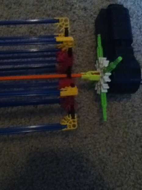 creo que este es el primer motor de jet modelo K'nex. Tiene un viento motor para girar el ventilador. No se nada de energía, ni actuará como un ventilador decente. Sin embargo parece poco interesante por lo que se podría utilizar como decoración o un