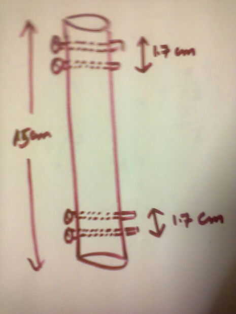 Puede utilizar un tubo de fontanería de pvc para hacer el soporte. Perforar agujeros en él según el diagrama de la imagen.