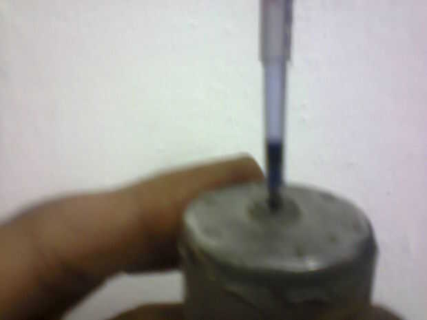 Tenga cuidado al insertar el extremo inferior del relleno en el eje del motor que no doble la recarga. Afinar el motor ventilador cuando haya completado este paso así que ese ventilador mantiene adecuado eje mientras gira.