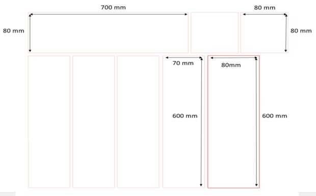 -Corte las piezas de la hoja MDF como se muestra en la imagen.