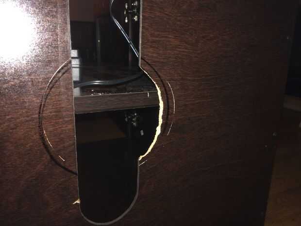 Mida el diámetro del ventilador y luego use un marcador para dibujar un círculo en la parte trasera del stand donde desea instalar el ventilador. Elegí el centro de cada compartimento, ya que usé sólo dos ventiladores. Dependiendo de la cantidad de calor que necesita disipar, usted puede optar por dos ventiladores a cada lado. Corte el círculo con un cúter o cuchillo del exacto. Coloque el ventilador sobre el círculo y utilizar un taladro para perforar los orificios de esquina para montar el ventilador. Utilizando tornillos con tuercas, seguras el ventilador en la parte posterior del soporte de la TV.