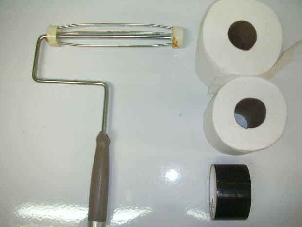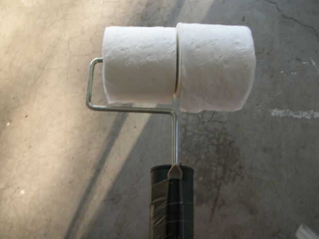 Siguiente paso que quiere poner el papel higiénico dos rollos en el rodillo de pintura. Lugar el papel higiénico rollos por lo que suministro el papel por debajo en vez de sobre. Si no hace bien los rollos de papel higiénico serán sólo centrifugado y no hacer nada.