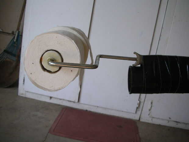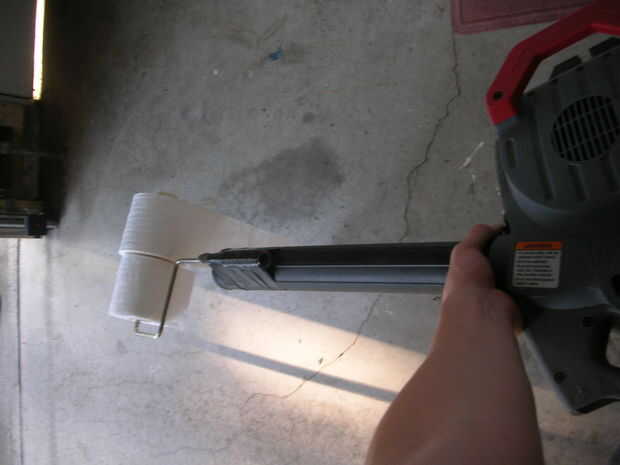 Cinta de la empuñadura de rodillos de pintura hasta el final de la boquilla de sopladores de hojas. Asegúrese de que el soplador de hojas es apuntado en la parte inferior la mitad de los rodillos de pintura parte de spinning y no directamente en él o el papel higiénico no gira.