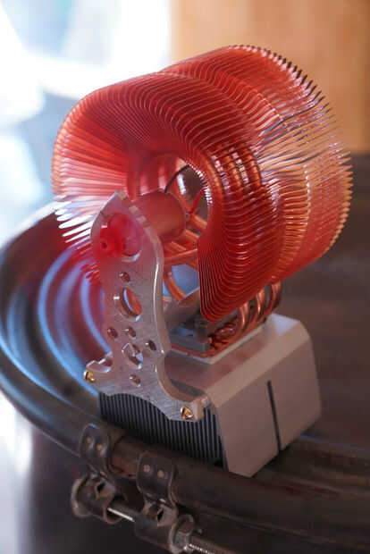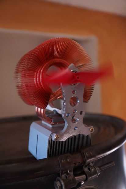 La superficie de la masa calentador de cohete en el centro ha alcanzado 830 grados así que mantener hacia el borde donde es más a lo largo de las líneas de 500 grados. En que zona de la parte superior del disipador térmico no llega por encima de 320 que es ideal como el Peltier es clasificado para no más de 350.