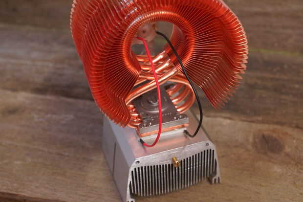 Después de probar el ajuste de todo, luego puse detrás usando la grasa térmica entre el dispositivo peltier y ambos disipadores de calor.