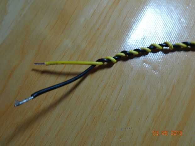 Luego uno rojo y uno de los cables negro y girar juntos.