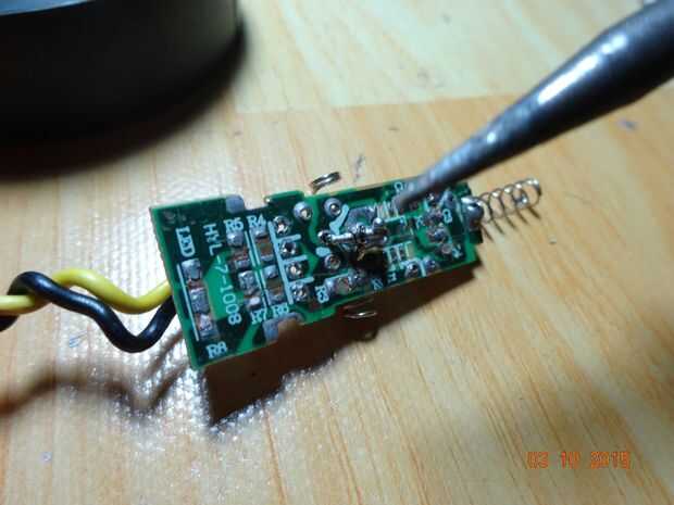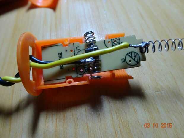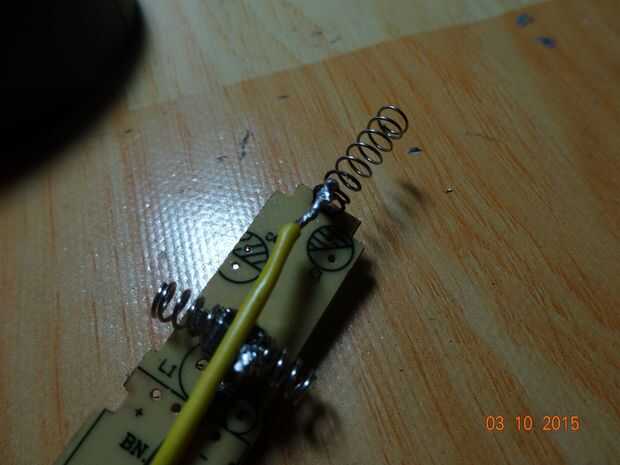 Suelde los cables amarillo y negro a sus muelles. Resorte superior debe ser positivo y resorte inferior debe ser negativo.