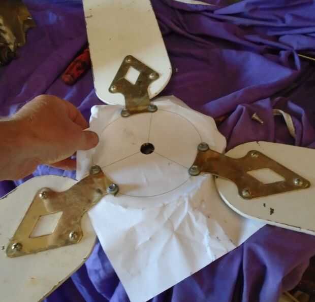 Su una buena idea usar una plantilla de papel para hacer hacia fuera donde las cuchillas necesitan ajuste y si usted no seguro de cómo hacer esto, vaya a mi primer ventilador de techo instructable que está cubierto en profundidad. Necesita conseguir las cuchillas en la posición correcta o serán tambaleante y vibran, producir ruido y aprovechar más potencia del ventilador el ventilador.