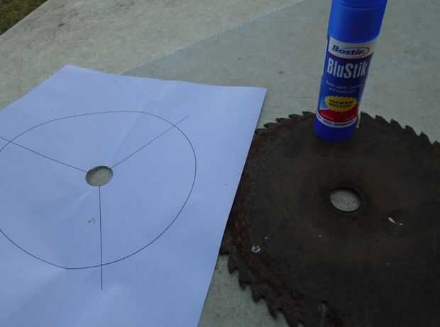 Simplemente pegué la plantilla en la hoja de sierra y centro había perforado tres centros de agujero. Tornillos Tek donde mantenga que las cuchillas y luego los tres últimos tornillos eran fijar en la hoja de sierra hasta el final del ventilador.