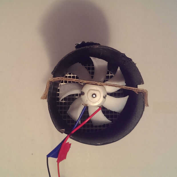 Si tienes una lata de Pringles como yo este paso será fácil para usted. Basta con cortar 2 ranuras en el poder en un final. No estén en el centro. Son sólo cerca de 0,3 cm lejos de allí, por lo que el motor más adelante es centerd. Echa un vistazo a las fotos.