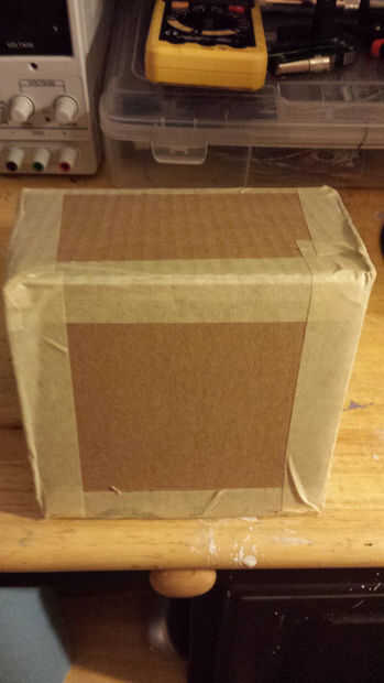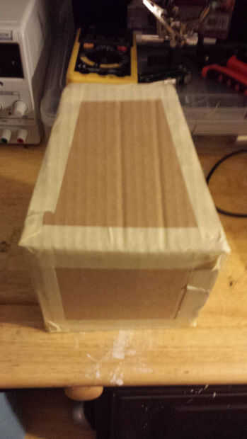 Antes de construir la caja de madera contrachapada he creado un modelo simple de cartón y cinta adhesiva para que las proporciones generales bien. Las proporciones se basan en dos ventiladores de ordenador, que tomó de una vieja torre de PC y los filtros de aire carbón de leña que he comprado en línea.