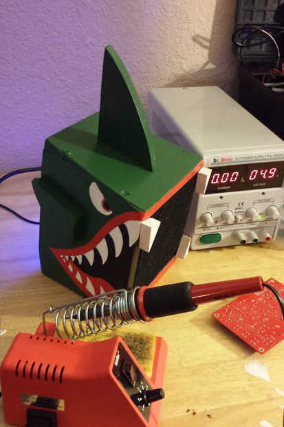 Miré fotos de avión P-40 Warhawk para inspiración y luego dibujó un rostro similar a los lados de la caja. Usé pintura de látex (que era una pintura con su propia cartilla). Después el trabajo de pintura apareció en el filtro (los dientes superponen el filtro que ayuda a mantenerlo en su lugar, aunque una vez que el ventilador es en la succión se mantiene bastante segura) y puso en marcha el ventilador. Los ventiladores rescatados tienen ellos de LED que da todo un resplandor bastante fresco y suministro más que suficiente succión (puedo por lo menos ocho pulgadas de distancia de la soldadura y ver el humo consigue aspirado).