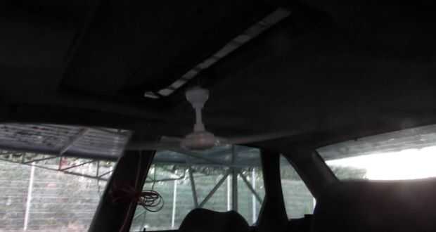 Así que puse un ventilador portátil en el techo del coche, entonces no puedo dormir bien, problemas.