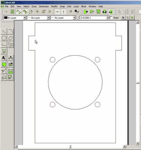 Nota: En LibreCAD, los agujeros más pequeños deben ser lugares en una capa diferente que el corte de contorno para que el cortador del laser software CAM puede ordenar estos cortes correctamente (los agujeros más pequeños deben cortarse primero antes de que el contorno se corta).