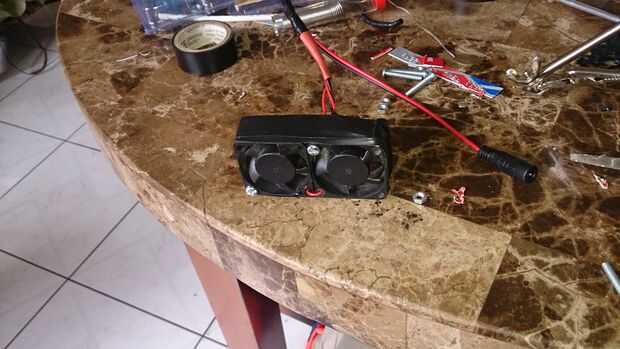 Aluminio 1-VGA cooler de Aliexpress.com usted puede encontrar lo que es bueno para usted (mientras más grande es mejor)2-DC motor de cualquier juguete viejo. Motor DC sin escobillas es mejor.3-some silicona térmica y la pasta del disipador de calor.4