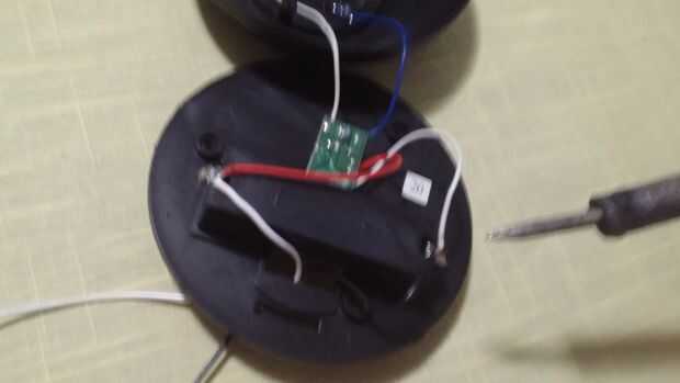 Usando el soldador, soldadura de este cable en el (+) positivo de la batería de la primera lámpara solar.