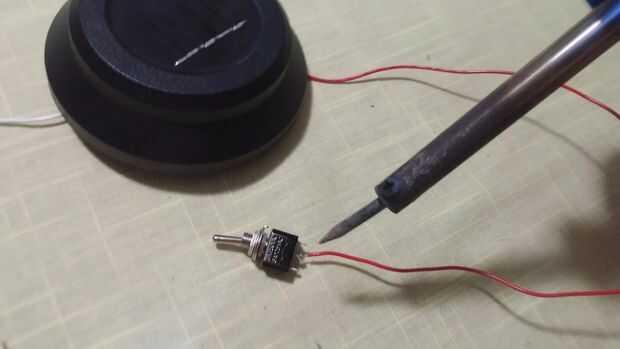 Mediante soldadura, suelde el otro extremo de este cable en el poste central del interruptor de SPDT.