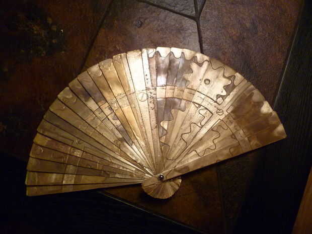 Hice un giro de una sección de la barra de latón, rosca en el extremo y dos tuercas bellota. En este punto el ventilador podría montar temporalmente. Niza, pero el patrón no era muy visible.