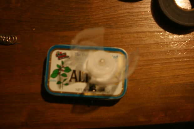 Usé la tapa de la botella de agua como titular de las aspas del ventilador y una lata de Altoids a casa todo!
