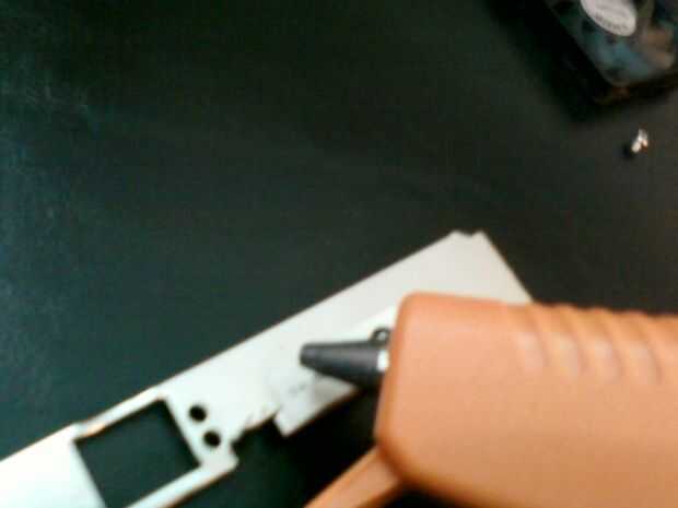 agregue el pegamento a la placa frontal, coloque el ventilador y presione firmemente.