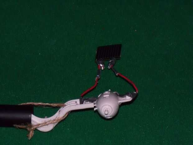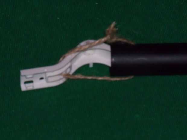 Ahora usted necesita conectar el motor al tubo. Pase un trozo de hilo a través del extremo del tubo enfrente del mosquetón. El kit que usa tenía un brazo en lo que hace fácil atar el motor. Si usted está usando un motor de apenas que podrá simplemente cinta adhesiva a su tubo. Si está utilizando un kit de solo atar el brazo al tubo o asegure con cinta y luego fije el motor al extremo del brazo. Fijar el motor con un poco más y tu bien ir!