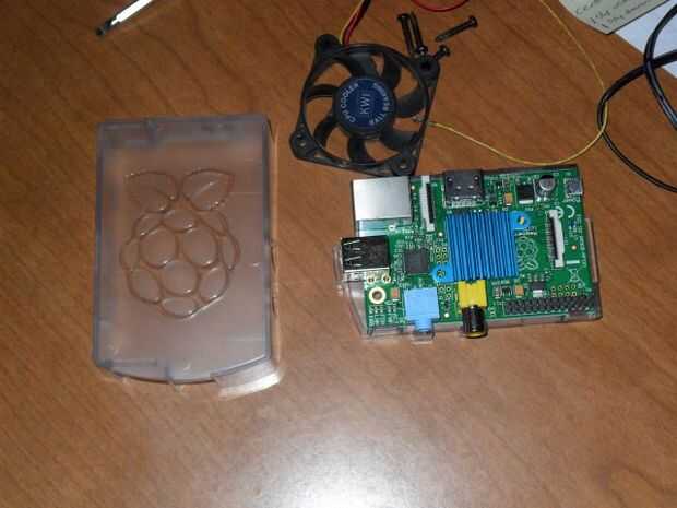 Recibir su frambuesa Pi, una concha, un ventilador y un disipador de calor.