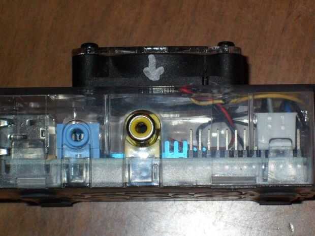 Mi ventilador tiene 3 cables, pero solamente 2 eran necesarios para esta aplicación. Mi cable amarillo, creo es una salida de sensor de velocidad. Cortar hacia atrás, sumergido en el cemento de goma para aislar el extremo cortado, lo coloca y pegadas a la parte superior interna de la cáscara.