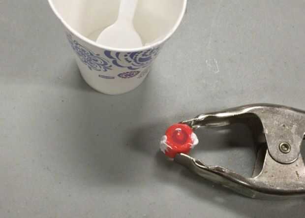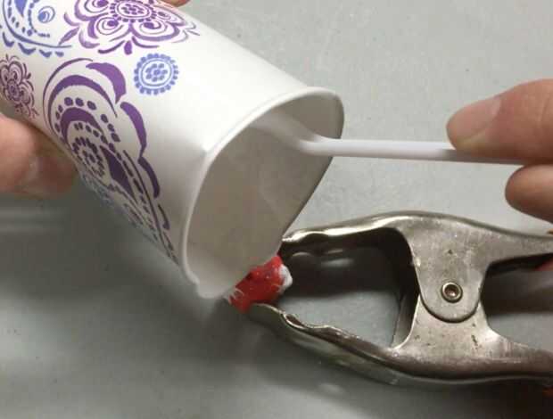 Mezclar una pequeña cantidad de cualquier Ecoflex está utilizando. EcoFLEX utiliza una proporción de 1A:1B, significa que debe haber una cantidad igual de ambas partes de la mezcla. Mezclar bien y luego lo rocíe en la abertura del molde. Dejar curar durante unas 4 horas.
