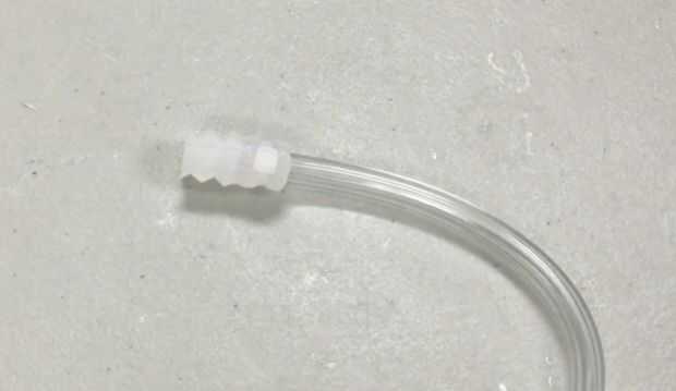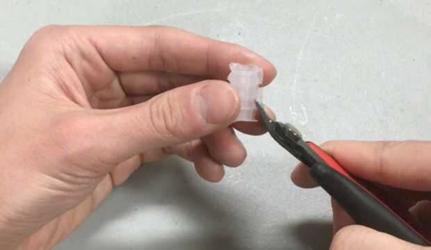 Una vez que la silicona se seca, retire la masilla. Utilice el destornillador para apalancar aparte el molde. Agarre la base de la parte inferior y sáquelo del molde. Utilice las tijeras al ras para que corte cualquier exceso flash. Ahora Conecte el conector de púas de 1/4" o 1/8" tubería.