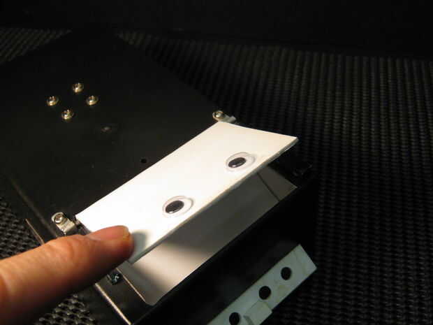 Este paso se ha completado con éxito cuando la puerta de la trampa puede hacer pivotar libremente a través del agujero en la caja de plástico.