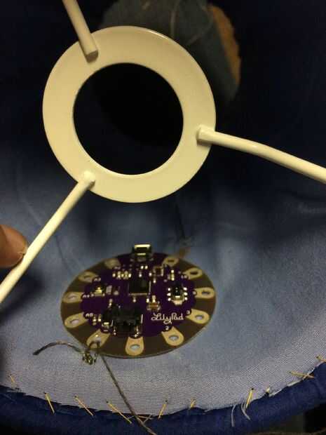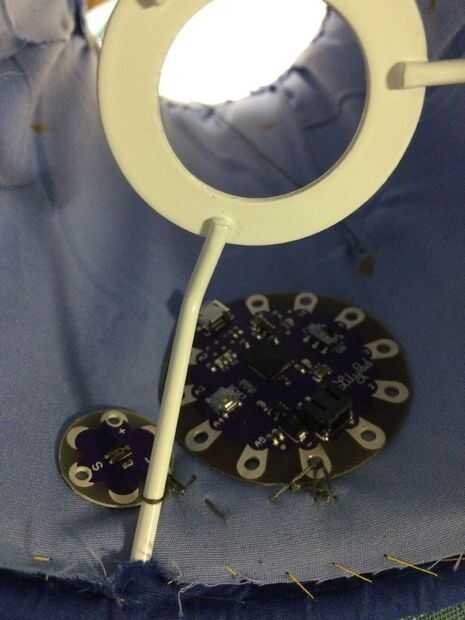 El siguiente paso es coser el lilypad y el sensor de luz. Mirar hacia atrás en su bosquejo y estén en los lugares correctos.