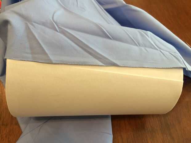 Consejo: Una cosa no en la mía (y poco se puede ver) es planchar la tela primero. El resto de la tela que se va a utilizar no necesita plancharse, ya que cada pieza será bastante pequeño. Sin embargo, esta ligera tela azul cubre la pantalla entera que es sensible con todos los pliegues en ella. Te sugiero altamente que plancha lo primero si tienes esos materiales.